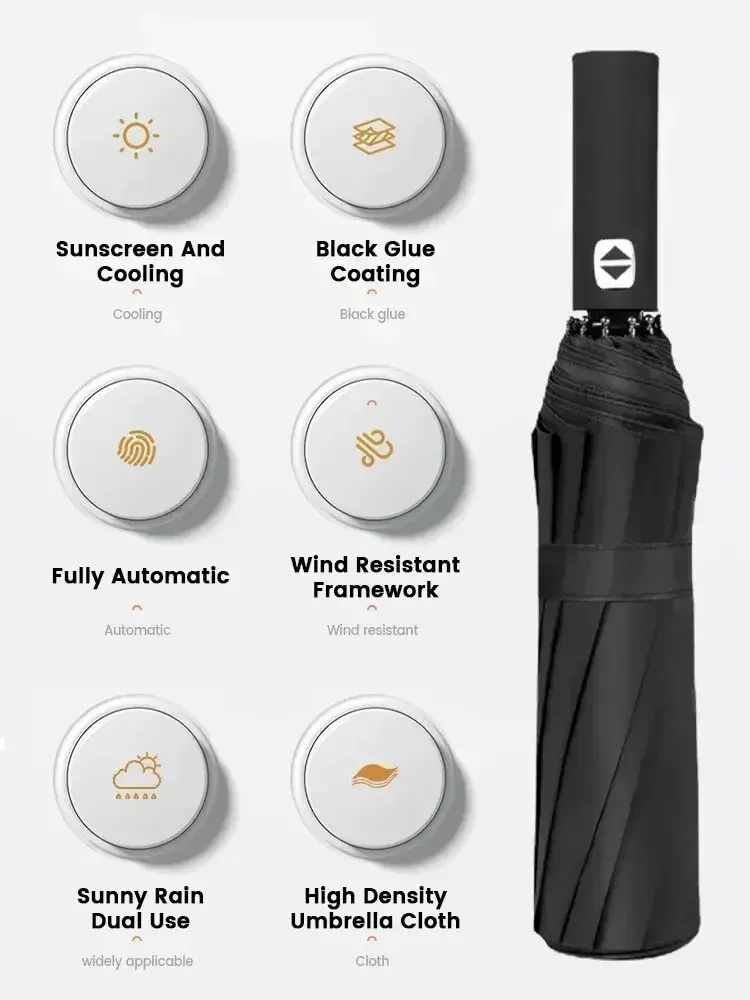 • Fully Automatic Control :The umbrella opens and closes automatically with just one button, making it easy to use and convenient.