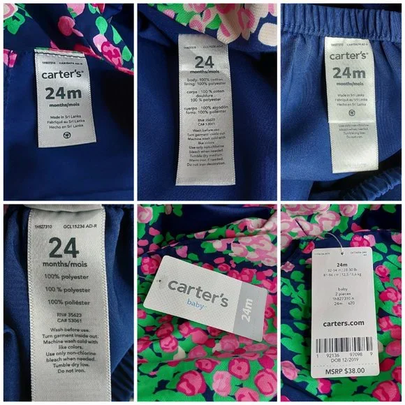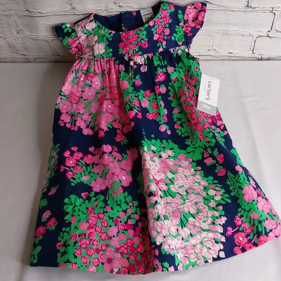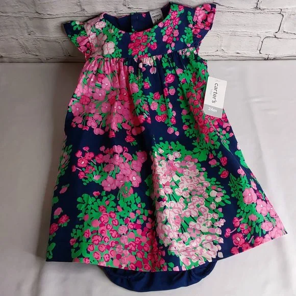 🍃🌸 FLORAL DRESS SET 🌸🍃~♡~ "BURSTING BOUQUET" ~♡~By : CARTER'S This Two Piece Set Includes: • One Dress • One Diaper Cover This sweet Dress Set features a Beautiful & Bold color palette, perfect for Photos, Everyday Wear, or a Special Occasion. The flowy material will keep her Cool & Comfy. • Cotton • Pleated • Fully Lined • Ruffle Sleeve • Button Back Closure~♡~ BURSTING BOUQUET ~♡~~○~ SIMPLICITY ~○~~◇~ DECEMBER "2019" ~◇~• Size: 24 Month • Colors:~ Navy Blue~ Poppin Pink~ Garneau Green • Material: ~ 100 % Polyester • RLD: 12 / 2019• RN# 35623 _ 53061●|○ CART 64 - 042 _Gq6R . - O€68842 ○|●This is a BRAND NEW item, in Original packaging. Item will be securely wrapped, and packed with the utmost Care when shipped.🌷Thank You for Shopping My Closet 🌷