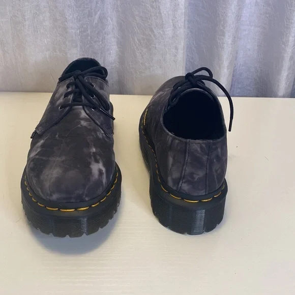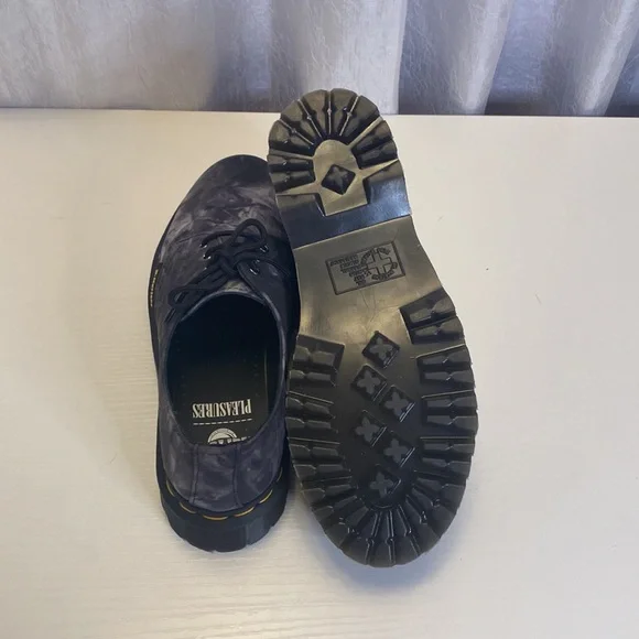 The latest collaboration between familiar partners Dr. Martens and Pleasures draws from the DIY attitude of the ‘90s. Here, the flagship 1461 Bex silhouette is made to stand out with an all-over tie-dye print. Recognized for its versatility, the low-top shoe features a premium leather upper and rugged soled, marked with the brand’s signature yellow welt stitching. The pair is finished with a Pleasures logo tag on the lateral side, as well as co-branding on the leather footbed to signal the joint foray.Three-eye lace-up silhouette. Metal eyelets. Leather upper. Tie-dye print. Sidewall stitch construction. Goodyear-welted lines. Air-cushioned sole. SoftWair memory foam insole. Soft leather footbed detailed with co-branding. Pleasures logo tag at the lateral side.