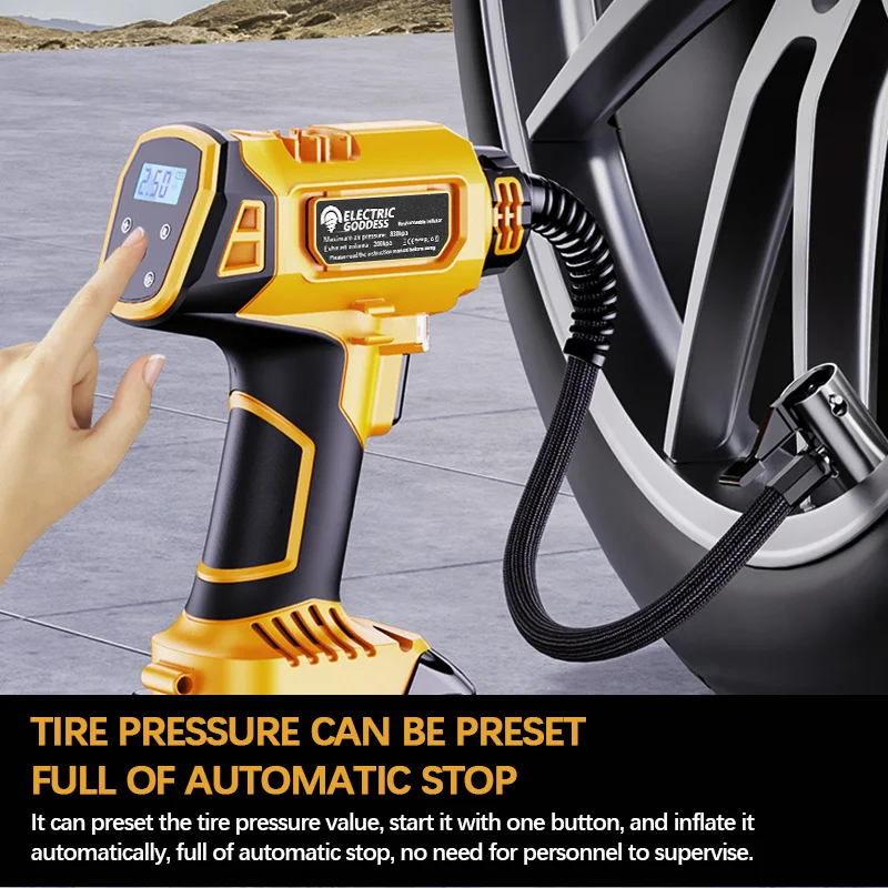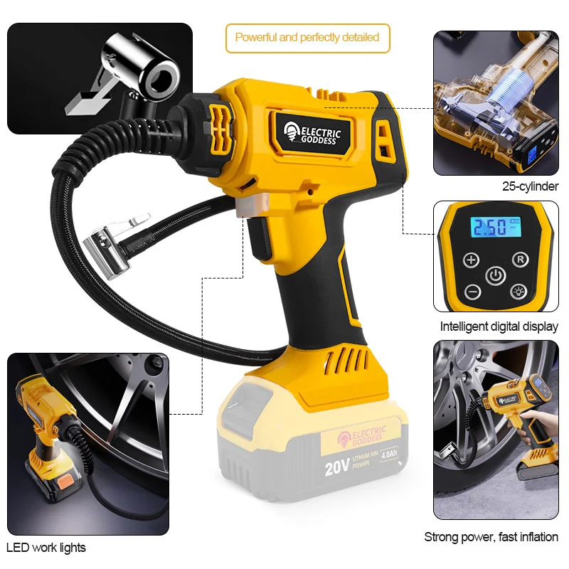 Electric Goddess Car Inflation Air Pump Cordless Tire Inflator Air Compressor Digital Display For Dewalt 20V Battery Power Tool