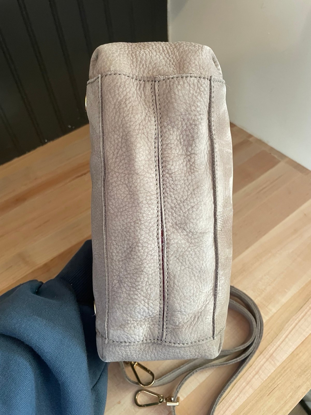 Hammitt Bryant Medium in gray natural with brushed gold hardware and adjustable crossbody strap. Only flaws are some scratches on some studs and an indent/scratch on front and back, which are pictured. 10x8x5in. Open to reasonable offers.