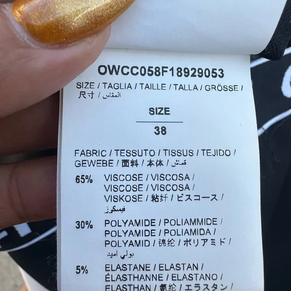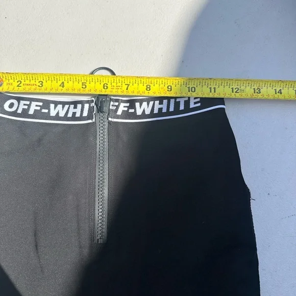 This Off-White skirt features a sleek black pencil design with a distinctive white elastic waistband, perfect for a professional setting. The midi length and structured fabric offer a modern and sophisticated silhouette. Ideal for any occasion Size 38 Italian 8US, see pictures for measurements Excellent condition