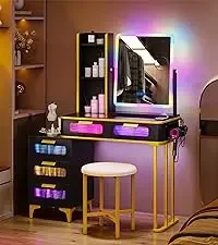 The makeup desk adds standard USB/Type-C ports and wireless charging station, you can charge your devices easily.