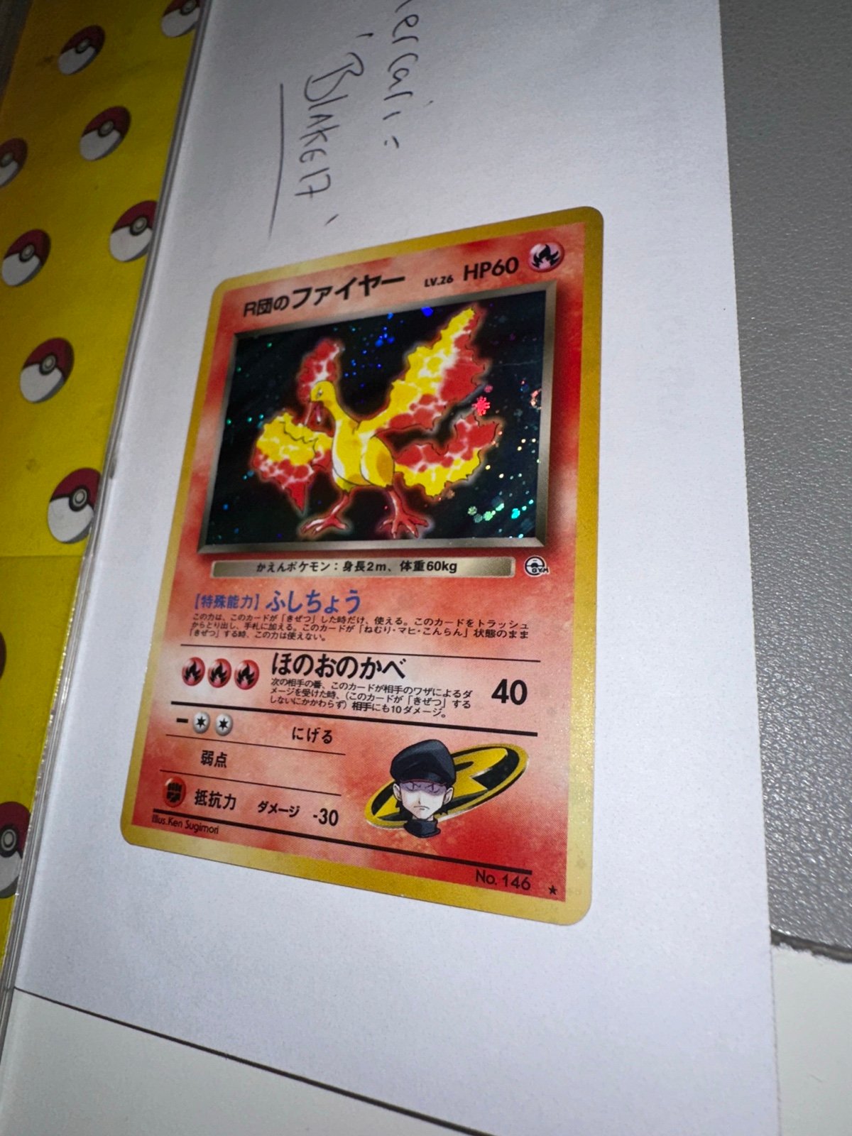 For sale: Rocket’s Moltres – Japanese No. 146, a stunning vintage holo from the original Gym 2 (Challenge from the Darkness) set. This Japanese-exclusive card features bold, fiery artwork of Moltres under Team Rocket’s command — a favorite among collectors for its unique style and nostalgic value.