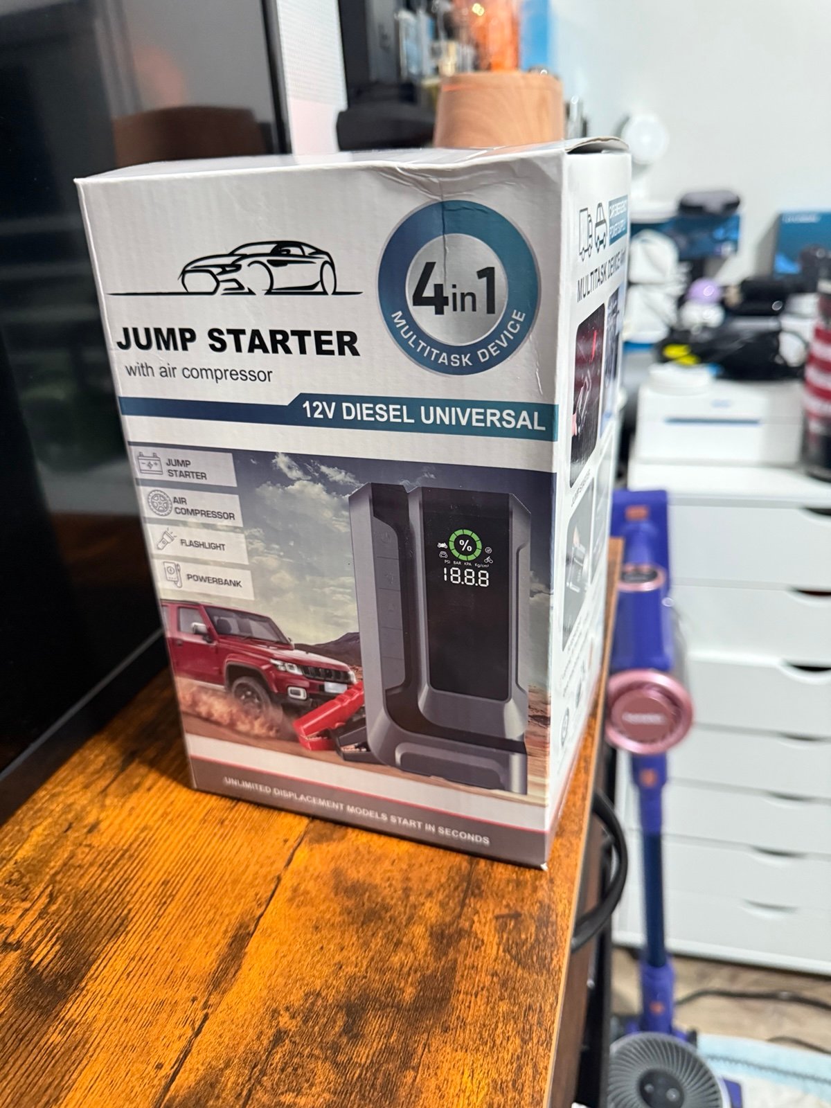 Selling brand new never opened Scatach Q16 4000A Car Jump Starter with Air Compressor, 150PSI Portable Jump Starter Battery Pack (10.0L Gas/8.0L Diesel), with QC3.0, Large Display, 3 Modes Flashlight and Jumper Cable