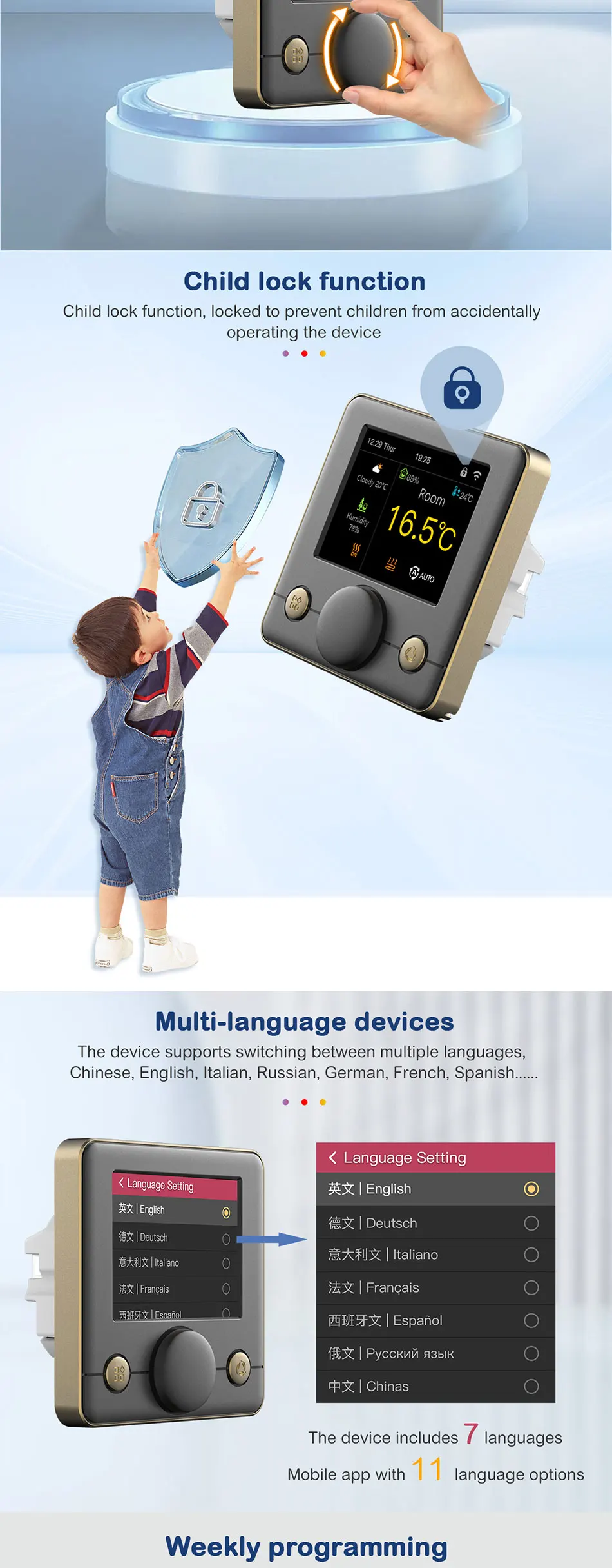 4,Supports 5+2 or 6+1 or 7 days with 6 time slots to set the perfect temperature for each time of the day