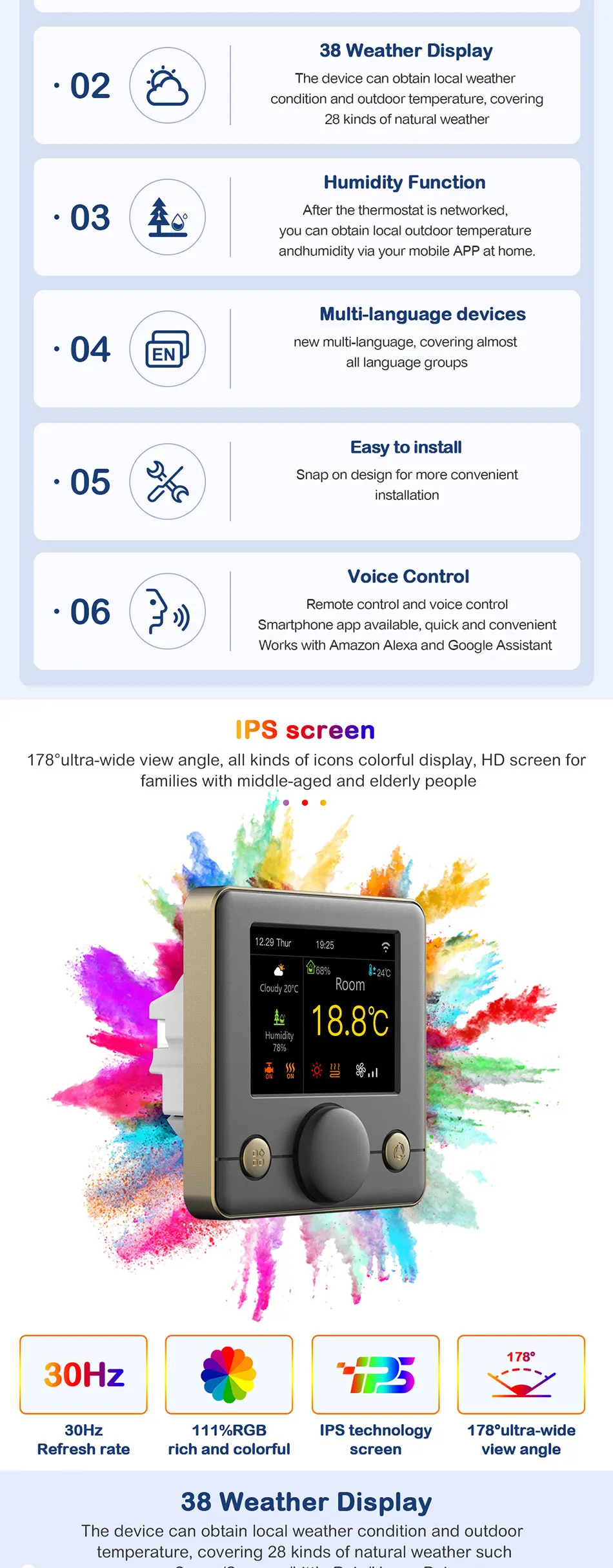 178°ultra-wide view angle, all kinds of icons colorful display, HD screen for families with middle-aged and elderly people