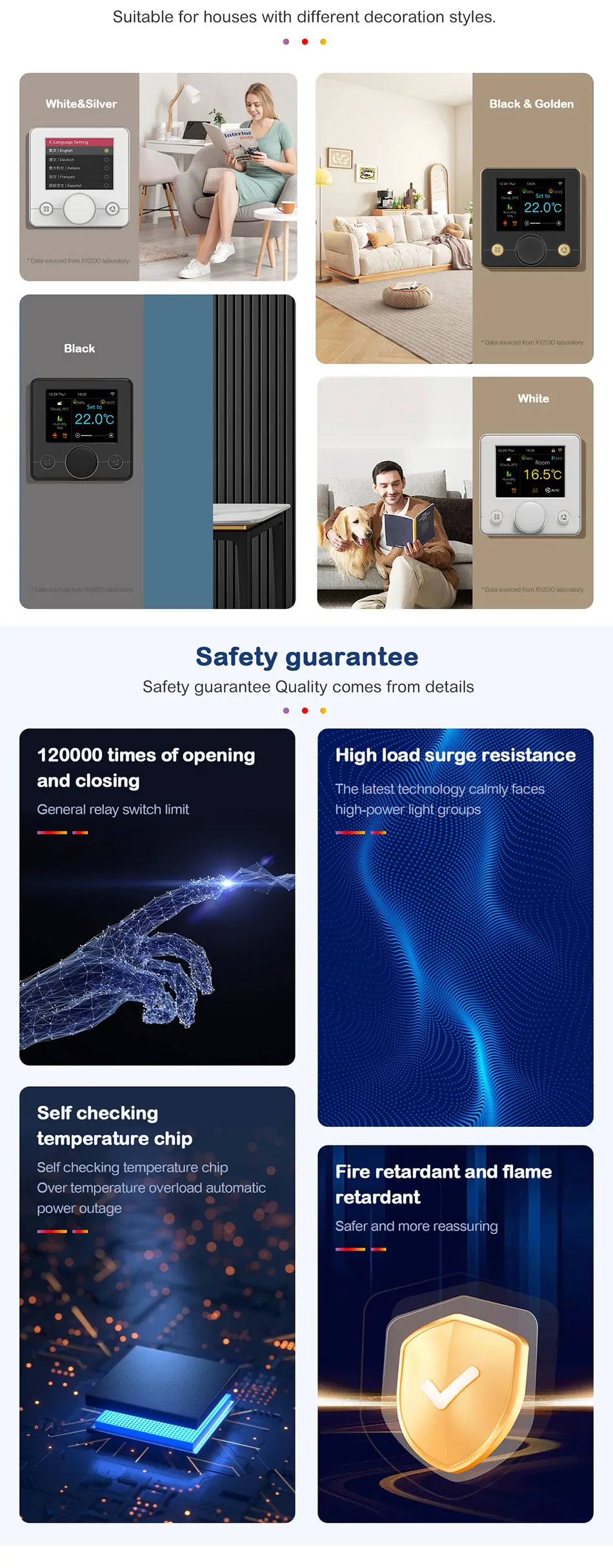 10, Power-off memory function, thermostat saves data in real time, so that it does not need to be reset when it is powered on again