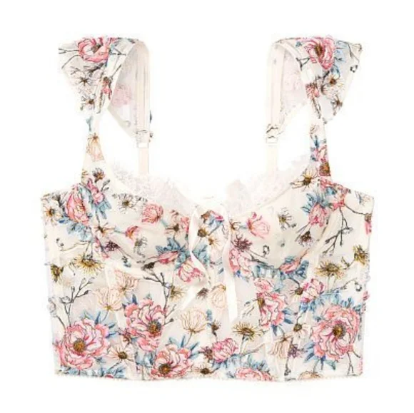 Too pretty to hide—lace-accented tulle & mesh, subtle sleeves & a decorative ribbon come together in this lingerie iteration of the prairie top. Wear it in or out. UnlinedUnderwire Adjustable strapsZipper at the back Featuring mock sleevesDecorative ribbon at frontPINK, WHITE, BLUEBody: 100% polyesterLining/lace: 100% polyamideCup lining: 82% polyamide, 18% elastaneBack wing: 79% polyamide, 21% elastane exclusive of decorationMatching Thong S, M, & XL AvailableCheekie XS