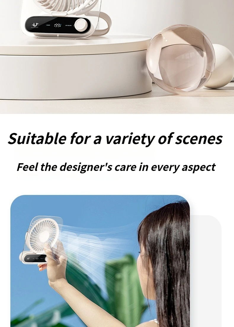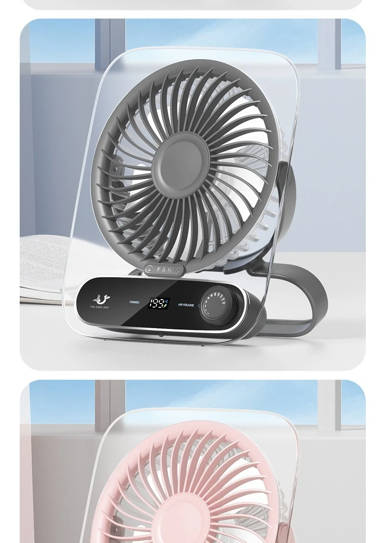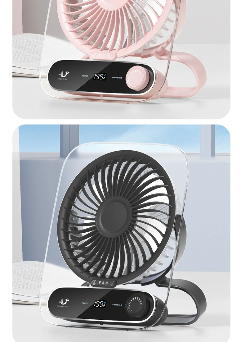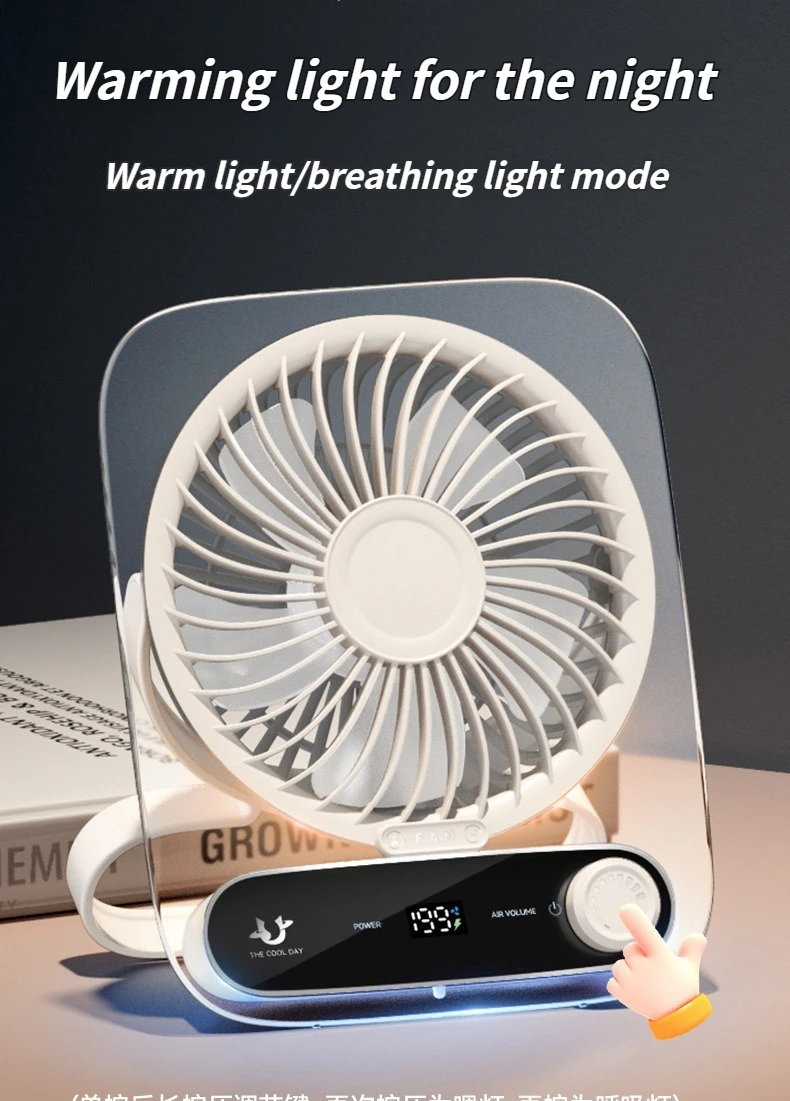 Ultra-Thin Portable USB Desktop Fan with Digital Display and Night Light Silent and Perfect for Home Dorm and Office Use