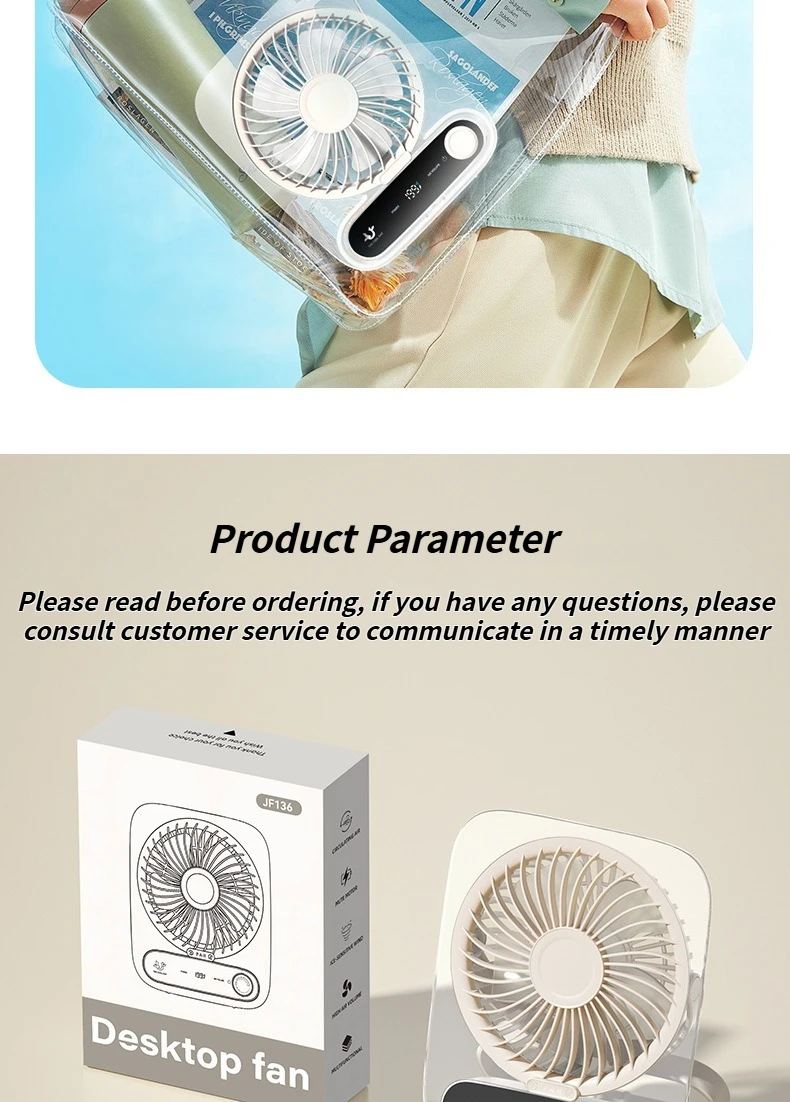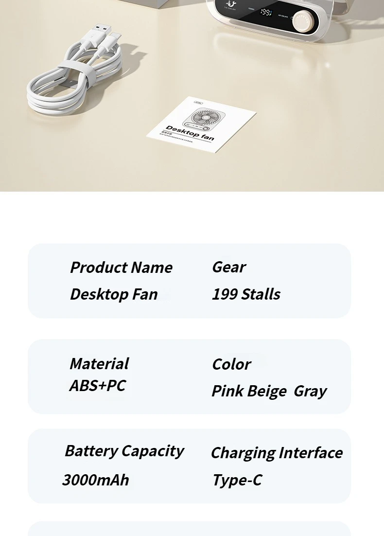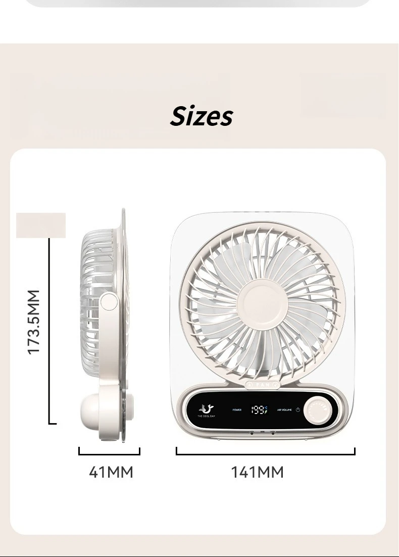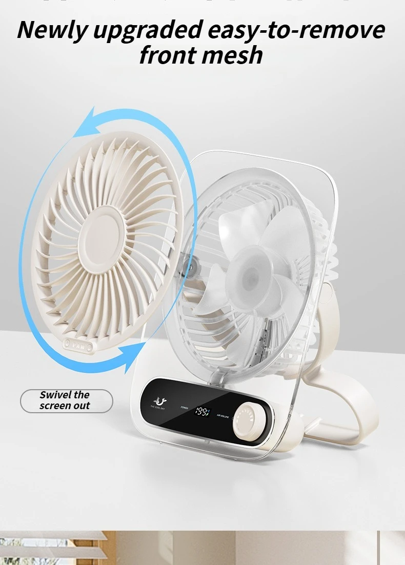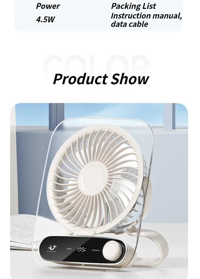 Ultra-Thin Portable USB Desktop Fan with Digital Display and Night Light Silent and Perfect for Home Dorm and Office Use