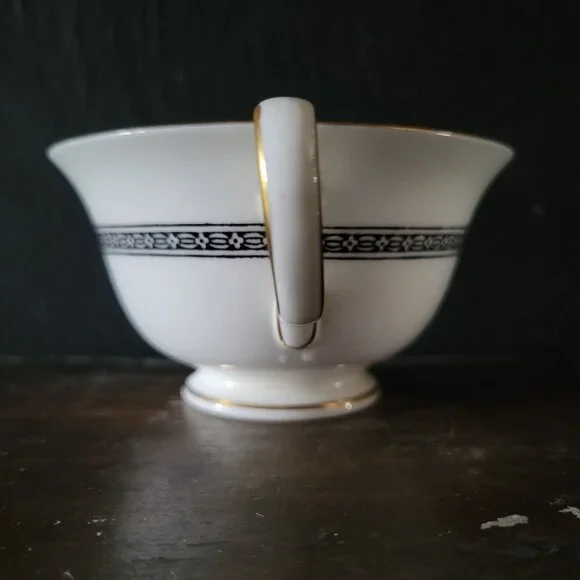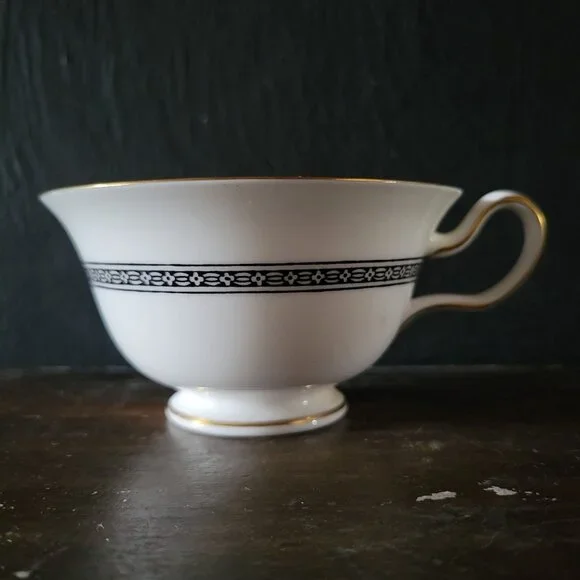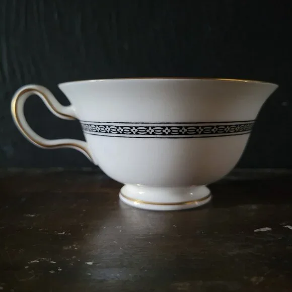 Vintage Wedgwood Florentine Black Dragon Design Bone China Teacup With Gold TrimThis Wedgwood Florentine teacup, crafted in fine bone china, showcases intricate black dragon patterns with gold accents. A sophisticated choice for collectors or formal settings.• Features ornate black dragon detailing• Gold-trimmed edges for a refined finish• Durable bone china construction• Comfortable single-handle design• Timeless vintage styleMEASUREMENTS:2.25 inches tall x 5 inches wideCAPACITY:6 fl oz CONDITION:There are no chips or cracks.This is a pre-loved vintage piece - vintage items have been loved and used by the previous owner(s) so please expect for there to be some minor imperfections. If there are any major imperfections, I will do my best to list them. Please take the time to view each photo carefully and feel free to message with any questions.SHIPPING:Orders ship from a smoke-free environment.
